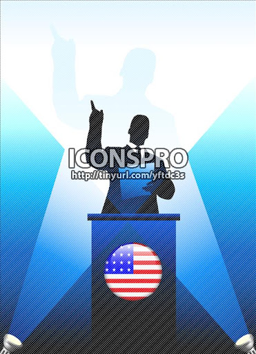 United States Leader Giving Speech on Stage Original Vector Illustration